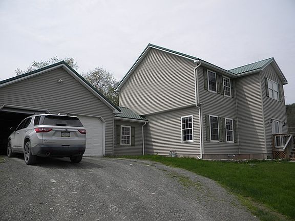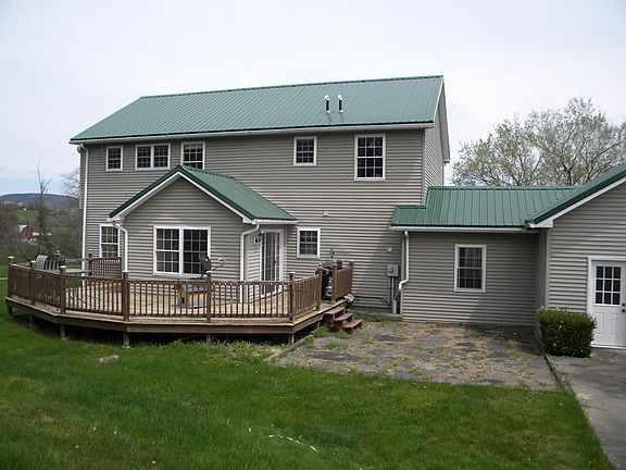 Nearly 3,000 SF of living space with 4 BR's and 2.5 baths on 13+ acres of country side. No thru traffic and super views ! Full basement partially finished; central air; new steel roof over the attached 2-car garage and over the home; open wood deck and concrete patio in the rear. Attractive entry foyer, separate dining room and more !!