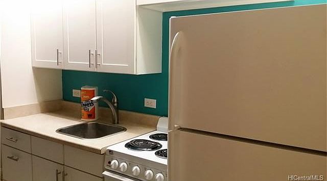 Excellent Condition / Renovated / Move In Ready! Nicely renovated with laminated flooring, new baseboards, fresh paint & blackout curtains. Kitchen has an apartment size oven, full size refrigerator & tile flooring; bathroom has a tub/shower combination. Unit includes A/C, covered lanai with Downtown City Views and one assigned, covered parking stall too. Building is secured with key access and parking area with security cameras. Conveniently located on the outskirts of downtown across from Queen's Hospital and close to the State Capital building / downtown with easy access on & off H-1. MF includes Hot water, Water / Sewer & common area maintenance. Email / Text Listor to schedule a showing TODAY (short notice ok). New shelves installed through out unit. Wall mount TV rotatable installed .