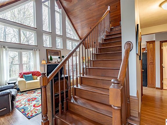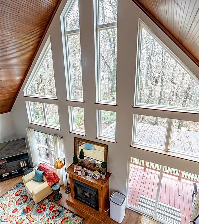 Come explore this charming home nestled on a serene, wooded lot. As you step inside, you'll be greeted by a spacious open floor plan with soaring cathedral ceilings and a wall of windows that offer breathtaking views of the property. The main level features an open living, dining, and kitchen area, along with one bedroom, a full bath, and a convenient laundry/mud room. Upstairs, you'll find a cozy loft area—ideal for an office or reading nook—leading to the primary bedroom with a private ensuite bath. Outside, enjoy a peaceful, private retreat with beautiful wooded views, a fire pit, and a storage shed. The home also includes a two-car carport with an attached utility garage for added storage. Built with durable 2x6 walls and 2x12 New England Fir rafters, this home has recently upgraded HVAC for comfort. Whether you're looking for a personal retreat or a potential rental or AirBnB property, this is one you won’t want to miss!