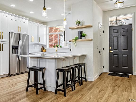 Must see! This light filled townhome with high ceilings and walls of windows so completely remodeled that you will feel like you’re in new construction. Gorgeous 3 BD/3 FULL BATH, plus study area, townhome offers an attached 2-car garage and is located in popular Kensington neighborhood. You’ll love the modern farmhouse designer finishes and beautiful white oak LVP flooring throughout! Bright kitchen with white shaker cabinets, pantry, pullout shelving, stylish hardware, white subway tile back splash and quartz Carrara countertops! Mingle with guests around large quartz island. Cozy family room with beautiful built-in shelving surrounding the gas fireplace. Walk out the sliding doors onto the large east facing balcony and enjoy the Colorado sun. Lovely sunset views from the front porch. Spacious primary bedroom includes a vaulted ceiling, Juliette balcony, 5-piece bathroom with dual sinks and lg. walk-in closet with custom cabinetry. Study/office area on the 2nd floor landing is perfect for working at home. Sunny 2nd bedroom has an en suite bathroom, walk-in closet with custom cabinetry, vaulted ceiling and windows draped in gorgeous floor length linen curtains. Even the garden level bedroom has high ceilings and a lg. window, perfect for guests or teenager suite. Laundry room with new cabinetry/shelves. Attached 2-car grg. includes built-in shelving/tool racks. Community landscaped with beautiful trees and courtyards. With a large fenced-in dog park, outdoor pool, and hot tub, you'll be able to spend quality time with your furry friend as well as friends and family members. Located in the Cherry Creek School District, its proximity to Costco, Target, Starbucks, Sprouts and Safeway means never running out of essentials while saving on gas! Nearby parks and easy access to the Highland Canal trail for biking and jogging. Centrally located. Easy access to downtown Denver, I-225, DIA, Cherry Creek North, DTC, Anschutz CU Medical Center and Lowry is just a bonus!