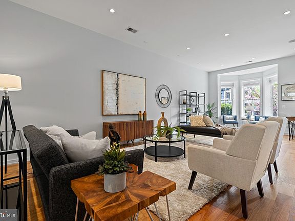 This fabulous two-level townhouse condominium was remodeled to perfection in 2014. The main level's 65' long open space offers multiple living and dining areas. There's a classic bay window at the front and the gourmet kitchen at the back boasts marble countertops and backsplash, Woodmont Cabinetry, amazing storage and a 12' island with breakfast bar. The stainless-steel appliances include Thermador refrigerator, gas range and dishwasher; under-counter Sharp drawer microwave; and a wine fridge. Big windows and glass door lead to a deck, stone patio, garden and a new gravel parking pad with 9' wide double-door gate. (Rear yard is two separately deeded parking spaces which convey with the sale.) Also on the main level is a powder room, coat closet and additional storage closets. The upper level features two terrific front bedrooms next to a full marble bath with skylight and laundry closet and a stunning primary bedroom suite. The palatial primary bath has a dual-sink marble vanity, massive marble shower, marble tile floors and a skylight. The rear balcony has a spiral staircase leading up to the private roof deck with panoramic views. Built-in ceiling speakers and deck speakers; Sonos sound system components convey. The lovely front garden has a common seating area. When you do leave this urban retreat, this popular Logan-Dupont location is close to all the best of city living! See the floor plan in Docs and the video in Virtual Tours.