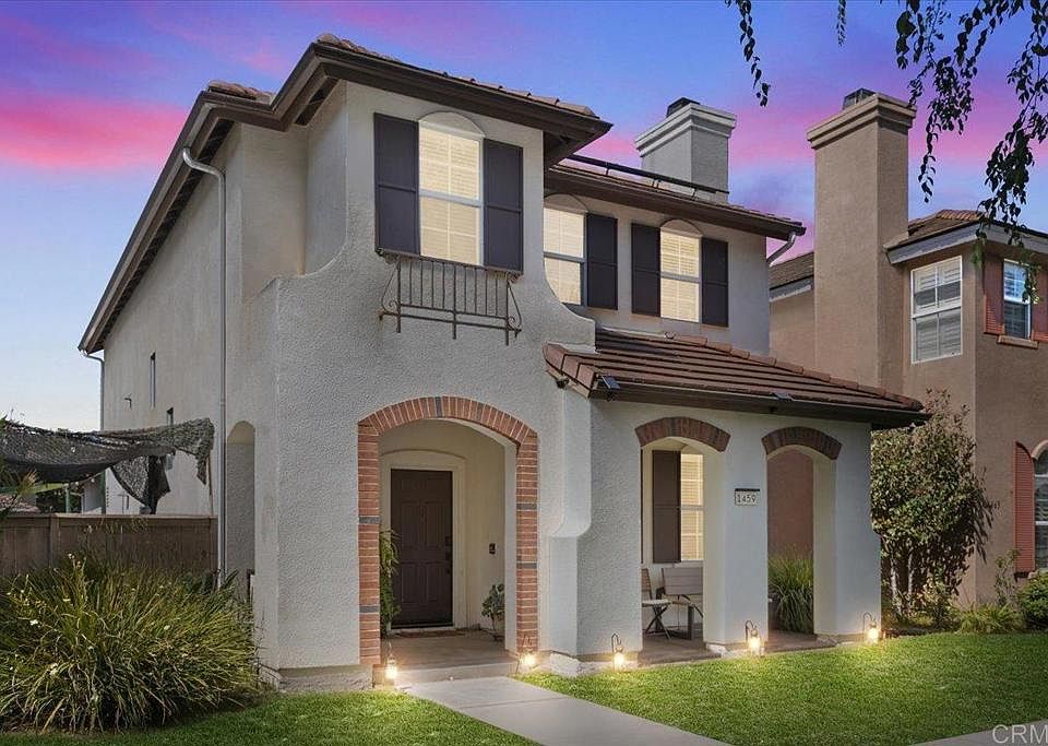 Welcome to this beautifully upgraded 3-bedroom, 2.5-bath home in the heart of Otay Ranch. Offering 1,664 sq ft of thoughtfully designed living space, this two-story residence features an open-concept layout with tile and hardwood flooring, spacious living and dining areas, and a stylish kitchen with quartz countertops, and shaker-style cabinetry. Modern conveniences include WiFi-controlled lighting throughout, energy-efficient solar panels, and a garage equipped with extensive built-in storage cabinetry and durable epoxy flooring. The upstairs primary suite is light-filled and versatile, offering space for a home office or fitness nook. Step outside to a private backyard oasis featuring a custom wood pergola and stamped concrete patio, perfect for entertaining or quiet evenings outdoors. This home offers low-maintenance landscaping, and a location that’s close to Veterans Elementary, Santa Venetia Park, and the community pool and playground. Plus, you're minutes from Otay Ranch Town Center, shops, dining, and much more. This move-in ready home combines comfort, efficiency, and location. Schedule your tour today!