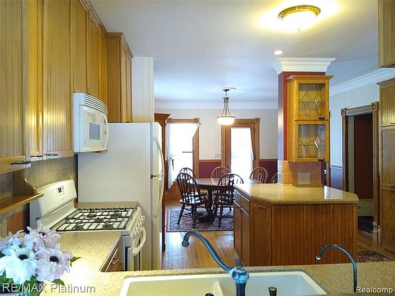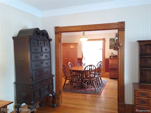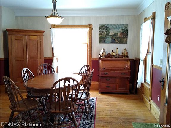 Built in 1880...current family has owned home for the past 45 years. Situated on one-third of an acre lot. Custom kitchen remodel with to-ceiling cabinetry, island, Corian counter-tops and abundant pantry storage. Beautiful southern facing breakfast room. First-floor master bedroom with walk-in closet or perfect for office too. First-floor laundry. Remodeled bathrooms...one with claw-foot tub, the other with walk-in shower. Beautiful woodwork and finished hardwood floors throughout most of home. Sewing/TV/exercise room on second floor with access to third floor/attic space that is ready for finishing...approx. 840 sq. ft. Recent updates include: electrical--200 amp service, copper and PVC plumbing, well pump (2019), furnace, water-softener and metal (aluminum) roof with Lifetime Guarantee that transfers with sale. Lovely shaded and private extended back yard with Paver patio area and large deck. Extra-deep 14 X 44 ft. detached garage great for plentiful storage or for the hobbyist.