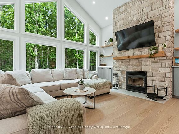 Welcome to the home of your dreams! Tucked away on sought-after Wigamog Road, this recently built Nelson prefabricated home offers the perfect blend of luxury and tranquility. Meticulously crafted with exceptional attention to detail, this stunning residence truly leaves nothing to be desired. Step inside and prepare to be captivated by soaring 16-foot cathedral ceilings that frame breathtaking views of your own private slice of Haliburton forest. The main level boasts an airy open-concept layout featuring a spacious kitchen, living, and dining area perfect for entertaining or relaxing in style. You'll also find 3 generously sized bedrooms, including a primary suite with a spa-inspired ensuite that's simply to die for. The lower level is equally impressive, featuring 9-foot ceilings and a sprawling living area ideal for family gatherings or cozy movie nights. Discover 2 additional bedrooms, a luxurious custom-built sauna for ultimate relaxation, a state-of-the-art home theatre, and a stylish 3-piece bathroom. There is a laundry list of high end improvements Don't miss the chance to make this extraordinary home your personal sanctuary in beautiful Haliburton!