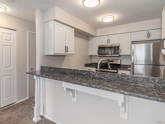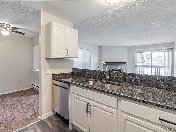 Remodeled top floor condo with one of the best locations in the complex*Private balcony overlooking the High Line Canal & Trail*Includes very sought after Deeded Carport #13*Updated kitchen with granite counters, new stainless steel appliances, freshly painted wood cabinets with modern hardware, undermount sink & new flooring*Dining room off the kitchen plus a bar top for stool seating*Cozy family room with woodburning fireplace*Spacious bedroom with huge walk-in closet*Updated full bathroom with new vanity & linen closet*Laundry closet with full-sized washer/dryer included*Fresh paint*Stylish new lighting*Newer water heater*In wall A/C*Storage unit*Short walk to the 2nd & Abilene lightrail station*Hiking & biking trails right out your back door*Conveniently located near I-225, Buckley AFB, Anschutz Medical Campus, Aurora Town Center, Aurora Mall & DIA*HOA has approved and is in the process of major property upgrades including new siding, roofs, railings & walkways*See it today!