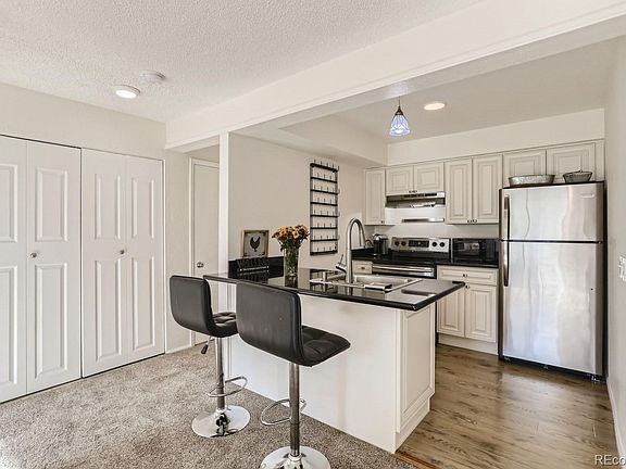 What a find! One bedroom plus office, 1 bath condo with reserved parking spot minutes from light rail and the bus for under $180000! It's remodeled too! Updated kitchen with custom cabinets, wood laminate floor, granite countertops and breakfast bar. The living room has wood burning fireplace and sliding glass doors out to a west facing patio. The full bath has been updated with a new vanity with quartz countertops.The bedroom is spacious and has a large walk in closet as well as another sliding door that opens to a patio. Then there is a bonus room that has a window so could be an office, workout room or even a non conforming bedroom. This unit is located in a great place in the complex because of those 2 large patios, loads of light and almost like your own private yard. This is an end unit, one shared wall and the storage room is above so very quiet. 10 minute walk to light rail! Close to shopping, restaurants, RTD as well as easy access to DIA and 225, 70.