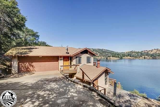 Lakefront living in this modest +/- 1296 sqft home with gorgeous lake views and local splendor. This is a two bedroom two bath home has lake access and sits on approx .32 of an acre. It has indoor laundry, decks on both levels and two-2 car garages. Has a dock permit but there is no dock in the water at this time. You can live her full time or as your vacation getaway. This is located at the South Shore of Lake Tulloch near the recreation area and dam.