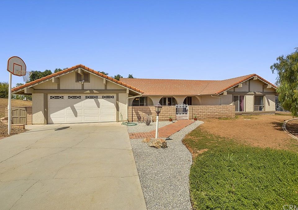 Named appropriately, this gorgeous home on Viewcrest has just that...Amazing breathtaking views.Rural living at it finest.This home sits atop a private street and is nestled around hillside and trees. Wonderful secluded location with views from front yard and back,in a quiet private community. Relax and enjoy the peacefulness of nature and chirping of the birds in this one story, spacious, ranch style home.This unique home is 2799 sq. ft with 6 bedrooms, 3 full baths and TWO large master suites. One master suite is located in hallway, the other off the kitchen that has its own fireplace. Large kitchen and open floor plan, plenty of cupboard space and an inside laundry room. Enjoy your own citrus fruit trees and have plenty of room to park your toys, boats, RV, or bring horse corrals and have horses or animals.You have a 27,443 sq ft lot to do as you please.2 car garage and a lovely courtyard out front to sit and enjoy the beautiful green trees and a blue sky. Entertain in your back yard with a pool, spa, patio cover, fire pit, with a gorgeous view of the foothills and city lights.Country living,and yet so close to the city. All the best the amenities are less then 10 minutes away, shopping, freeway and restaurants.The best of both worlds!!Very unique, Excellent for a multi generational home. Amazing opportunity to own this beautiful home at a great price!Call and schedule your showing, so you don't miss out on this home.There are very few homes with 6 bedrooms on the market.
