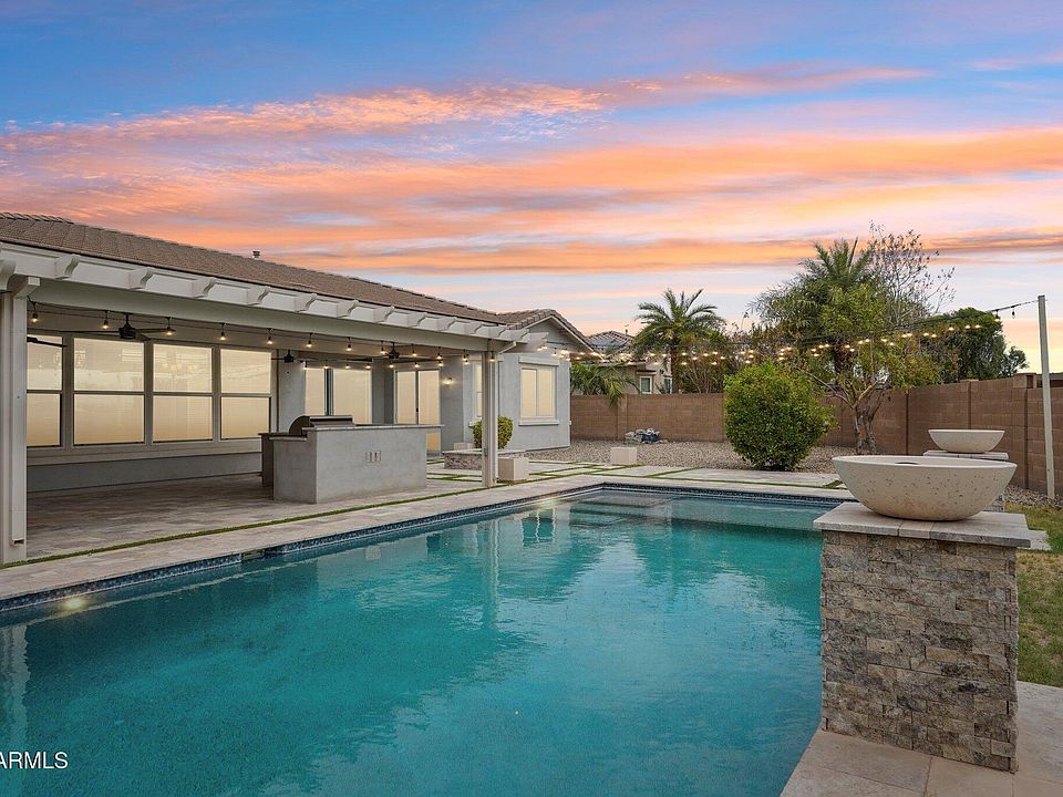 Welcome to this expansive and tastefully upgraded home, offering over 3,800 square feet of luxurious living space. Nestled in Palm Valley North in beautiful Litchfield park, this residence features 5 bedrooms, including a private attached casita and 4.5 bathrooms, soaring 12 foot ceilings and an open concept layout. The updated chef's kitchen features a massive island ideal for entertaining or family gatherings. Relax in your private courtyard or step into your entertainers backyard featuring a sparkling pool, built in barbecue island, cozy fire pit and custom entertainment wall. Located close to top rated schools, dining, shopping and entertainment, this home truly has it all. Don't miss your chance to own a piece of paradise in Litchfield Park.