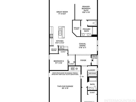 The Terra's design features a thoughtful flow and wonderful spaces for gathering and relaxing. A welcoming foyer reveals a sizable casual dining area with lovely views to the expansive great room and desirable rear patio, perfect for entertaining. Completing the well-appointed kitchen is an oversized center island with breakfast bar, plenty of counter and cabinet space, and a roomy walk-in pantry. The gorgeous primary bedroom suite is enhanced by a spacious walk-in closet and an alluring primary bath with a dual-sink vanity, a large luxe shower, and a private water closet. The secondary bedrooms feature ample closets and a shared hall bath. Additional highlights include easily accessible laundry and plenty of additional storage. Front and rear landscape included. Home is under construction. Photos are similar. BTVAI