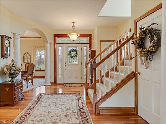 Phenomenal home & serene setting on 6.96 acres is this stunning one owner 3 bdrm/2.5 bath colonial, quality built 2002 w/2592SF (main level & up)* Foyer w/beveled glass door/side lights w/transom window & wood floor which opens to arched entry w/ pillars to great room w/wall of windows & wood burning fireplace w/gas starter (masonry chimney)* Arched entry w/pillars to formal dining room w/tray ceiling & crown molding* Kitchen w/cherry cabinets, under & over cabinet lighting, breakfast bar, ceramic back splash, pantry, roll out shelves, stainless appliances (2015) & opens to bayed breakfast room w/access to deck-all with ceramic floor* Spacious 1st flr laundry, sink & built in ironing board* Additional pantry & half bath complete the 1st flr* 2nd floor master w/ his & her walk in closets & master bath w/corner jetted tub, oversized shower w/double shower heads & make up vanity* 2 additional bedrooms, guest bath, office & loft complete the 2nd flr* Additional features incl 9'ceilings &