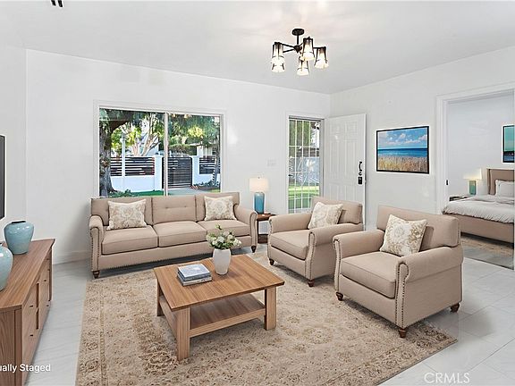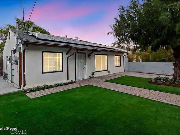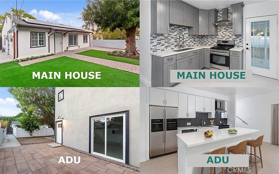 A rare opportunity with a BRAND-NEW, FULLY PERMITTED ADU built in 2025 and SOLAR PANELS on both the main home and the ADU. A TOTAL 5 BEDROOMS AND 4.5 BATHROOMS! Perfect for rental income, multigenerational living, or guest housing, this property combines functionality, efficiency and privacy in one turnkey package. The updated main house offers 3 bedrooms and 2 bathrooms with modern curb appeal that includes contemporary fencing, a gated driveway, artificial lawn, paver walkway and driveway, colorful landscaping, a covered porch, mature shade tree and rain gutters. Inside, you’ll find fresh paint, newer dual pane windows, 6-panel doors, a high-efficiency HVAC system with mini split A/C and a tankless water heater. The family room features a pitched ceiling, tile floors and modern lighting. The kitchen includes quartz countertops, ceiling-height cabinetry, mosaic tile backsplash, soft-close drawers and doors, a stainless 5-burner gas range with hood, stainless undermount sink and a French door that opens to the backyard. The dining area flows easily from the kitchen. The primary suite features luxury vinyl flooring, and an en suite bathroom with a custom glass-enclosed tiled shower. Two guest bedrooms and a remodeled guest bathroom with a frameless glass shower complete the layout. The backyard offers a covered patio with ceiling fan, fruit and shade trees and vinyl fencing. The NEW ADU features 2 bedrooms and 2.5 bathrooms with its own private front and back yards and separate entry. The open floor plan includes recessed lighting, natural light, tile floors and a stylish kitchen with quartz counters, ceiling-height cabinetry, full custom tile backsplash, Samsung® induction range, dishwasher, stainless undermount sink, pull-down faucet and island with breakfast bar. There are TWO PRIVATE PRIMARY SUITES, each with its own bathroom—one with a tub/shower combo and the other with a glass step-in shower. A powder room, laundry area, frameless glass stair panels, dual pane windows, 6-panel doors, separate water meter and a multizone high-efficiency heat pump add convenience and value. Located minutes from shopping, dining and freeway access, this property checks boxes for flexibility, efficiency and long-term appeal.