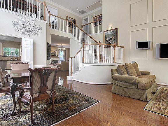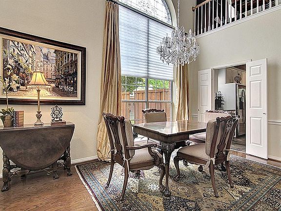 This gorgeous unique 4-3-2 home has one of the largest lots in Addison with large sports-basketball court & heavily treed back yard. Second story deck outside master bedroom looks out to beautiful back yard & has winding staircase down to patio. Wood floors throughout downstairs. Kitchen is upgraded with 2 wine refrigerators, slate tile, granite c-tops, stainless steel appliances, new thermador oven and viking range have never been used, & bosh dishwaser. Upgraded with beautiful white remote control blinds in formal living & dining & two crystal chandeliers with dimmers. Built in speakers with surround sound. TVS & mounts that can stay or be removed. New roof just installed. Guest bedroom & bath downstairs