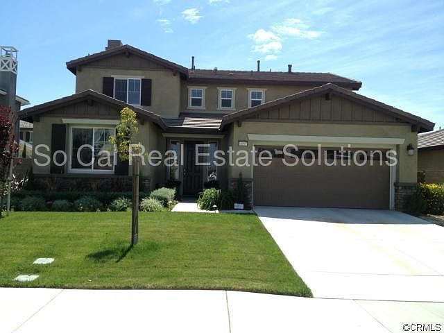 Gorgeous and upgraded Executive Home in Eastvale! This home looks like a model, gorgeous in and out with attractive and classy curb appeal, wide open spaces downstairs including a bedroom and full bath, formal living room, formal dining room, family room with fireplace, eating nook, beautiful kitchen with lots of cabinets and storage, stainless steel appliances, granite counters, walk-in pantry. Upstairs are four more ample bedrooms and two full baths, plus a study loft with tech desk. Custom neutral color paints, neutral upgraded carpet and tile throughout, ceiling fans, custom shutters on every window. This home is set up with home automation and security system, including Video entry system, Intercom, cameras in and out, surround sound speakers, touch screen Alarm keypad, touch screen Home Automation (turn on lights, lock doors, set alarm, check traffic, weather, and more!). The garage is a 3-car tandem with custom floor to ceiling storage cabinets, 15 amp added electrical, and high-end epoxy flooring. Both front and back yards are fully landscaped with added spotlights to highlight the foliage and trees. Bonus: Solar system, to help cut down on energy expenses. You'll find this home Immaculate, warm, inviting, beautiful!! Contact us to schedule a showing.
