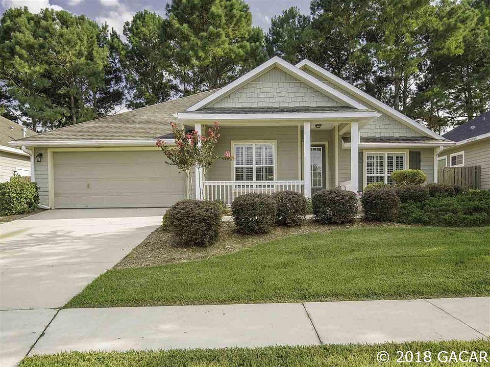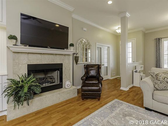 Right around the corner from Town of Tioga, this beautiful Tommy Williams home shows like a model. It is a 3 bedroom, 2 bath split floor plan with a study/den off the foyer. It boasts a large family room w/ gas fireplace, kitchen w/ upgraded wood cabinetry, stainless steel appliances, & a picture window w/ an amazing view. There is a generous dining area next to kitchen with tile floors & French doors to the lanai. The screened enclosed lanai extends your living area and leads to a gorgeous & easy to maintain fully fenced yard. The study/den could easily be used as 4th bedroom. Other great features include LED lights that provide a lower electric bill, a separate circuit for deep freezer in garage, plantation shutters, and the HOA covers the front yard maintenance. This community includes a pool, tennis court, basketball court, sidewalks, and a dog park. This home is zoned for A rated Meadowbrook Elementary School.