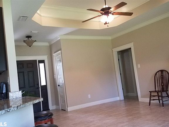 All Brick Custom House built in 2014 with upgrades galore! Porcelain tile floors, Granite counters Kit & Baths. Fine finishings throughout- Crown molding, Trimmed windows, Wainscoting. 9ft ceilings, 11ft Trey in liv rm & master, Recessed lighting. tall wood cabinets. Kitchen open to living & breakfast rm. Stainless appliances incl. LG refrigerator. Split plan with master ensuite having a Separate Shower (tiled), a garden tub, 2 walk-in closets, 2 vanities! Double garage w/workshop area. Landscaped yard w/fruit trees, flowers, room for pool. Sprinkler system. Large storage barn negotiable. Great location - Surrounded by newer homes and centrally located to shopping, the beaches, and I-10. Current Low taxes $504/yr and insurance $1450/yr. Info is deemed reliable but not warranted. Buyer or buyer's agent to verify any info desired. SF from Pub. Rec.
