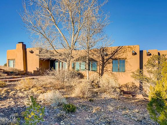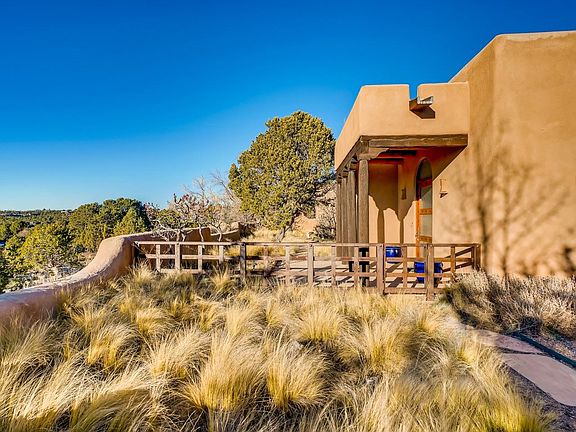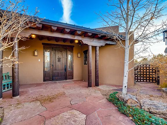 Looking for a top of the world location? This home is gated and has exquisite panoramic views. 2 lots encompass 4 plus acres. 1.2 acres is devoted to a sculpture strolling garden. Outdoor living at it's finest. Large open entertaining spaces, a cooks kitchen. High ceilings, vigas, latillas and diamond plaster finishes. Four bedrooms in the main home, a gym and one bedroom in the spacious guest house. All this in the exclusive subdivision of Sierra Del Norte, approx five minutes to the Santa Plaza.