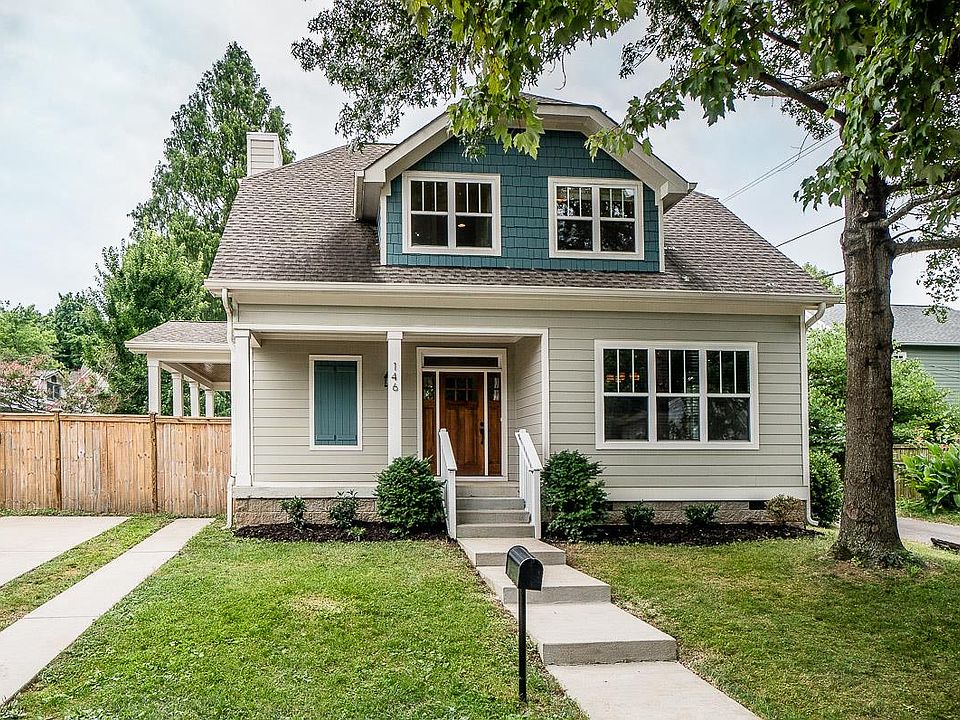 Fantastic house in Sylvan Park! Master and two other bedrooms up, another bedroom down. Laundry up. Great floorplan. Indoor and outdoor fireplaces. Fenced yard with enough room for dogs or kids to play but low upkeep. Kitchen has lots of soft-close cabinets plus a pantry; subway tile and granite. Separate shower and soaking tub in master.