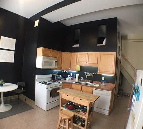 A true loft apartment with raised bedroom. This unit has all the amenities and a large basement space for storage or projects. It was once the local butcher shop but has been complete redone with a very convenient layout. This is a large space and staged area could be curtained off for additional private bedroom area. Message via Zillow are cumbersome and badly delayed.. plus gas and electric.