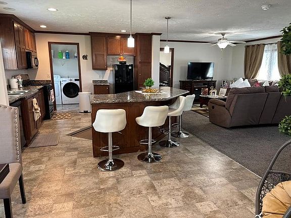 Discover your dream home in the sought-after Waverly Shores Villas! This stunning 3-bedroom, 2-bathroom ranch-style manufactured home offers modern living with an open concept design. The gourmet kitchen features elegant quartz countertops, a center island, and plenty of space for cooking and entertaining. Enjoy the convenience of a dedicated laundry room and the comfort of a spacious, well-lit living area. You'll be close to gas stations, schools, parks, stores, and restaurants. Don't miss out on this prime opportunity. Owner pays for water, Renter pays for gas and Electricity