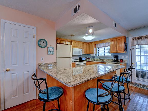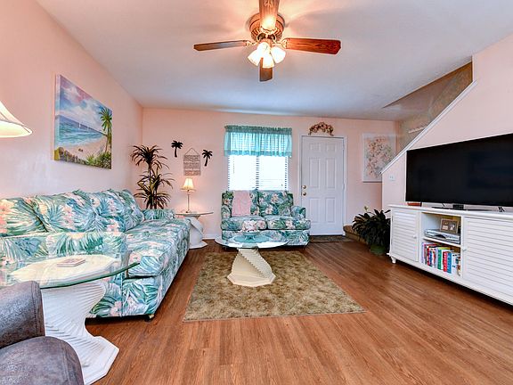 CURRENTLY UNDER CONTRACT, SELLER ACCEPTING BACKUP OFFERSLIVE THE DREAM! AFFORDABLE LIVING by the GULF OF MEXICO in this beautiful gated community and very low HOA fees!!! This unit is directly across from pool, tennis courts and playgrounds! This is an END UNIT, and larger than most, as the owners turned the balcony on 2nd floor into a bonus room and added an additional 4ft, variance approved and all permitted work! The kitchen has solid wood cabinets with pull-out shelving, and a lazy-susan in the corner, granite countertops! Natural Gas stove and HVAC. This Gated Community is Golf Cart friendly so you can drive and park by the stop light controlled crosswalk to the Beach-Front Pool and Recreation Building, or choose from the other 10 Swimming Pools within the complex (5 heated), Lighted