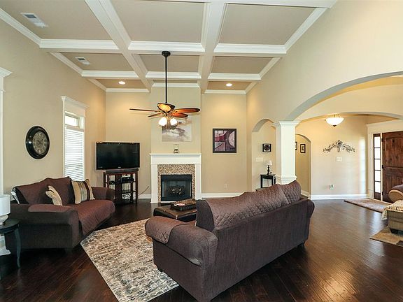 Home with open design, lG great room with coffered ceiling and fireplace. Kitchen is oversized with plenty granite counters tile backsplash, stainless steel appliances.A split plan features a lg master and bath soaking tub, tile shower and walk in closet. Hardwood in great room, formal dining and foyer all wet areas are tile. Back is a lg fenced yard, a screened back porch and another cement patio extremely well maintained home. HOME INCLUDES 4 YEAR OLD REFRIGERATOR, WASHER, DRYER SEE SHOWING INST