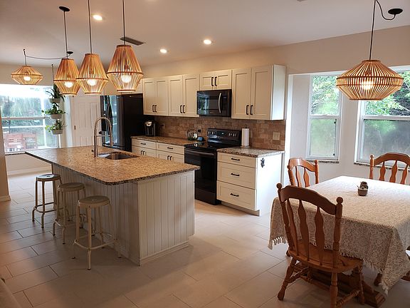 Recently updated makes home feel brand new! New Kitchen cabinets, beautiful granite counter tops, new appliances, and lovely 12x24 tile throughout makes it easy for cleaning, stunning master bath update! Spacious open concept that leads out to pool, great space for entertaining! Master suite has direct access to pool. Home built on fresh water canal lot so you can fish from your backyard with a great view! Rotonda west Florida is just minutes away from the beautiful beaches!