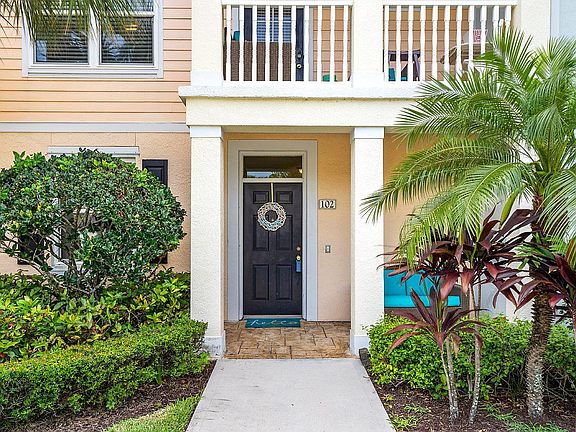Beautiful Townhome styled Condo in Somerset at Abacoa! This unit is located on a quiet street and has a view of the pool, playground, and putting green from the balcony. 3 bedrooms 3 full baths with an over-sized 2.5 car garage. Real hardwood flooring in living areas and carpet on the stairs and bedrooms. Enter the home on the first floor with a door to the garage as well. The second floor includes the living room with beautiful crown molding. The dining room with Trey ceiling, decorative and crown molding. The kitchen offers granite counter tops, SS appliances, tile backsplash, and a breakfast bar. There is one bedroom and one full bath on the second floor as well. The third bedroom and Master bedroom are located on the 3rd Flr. HAVE AGENT SHOW POOL/CLUBHOUSE ACROSS STREET IT'S FABULOUS!