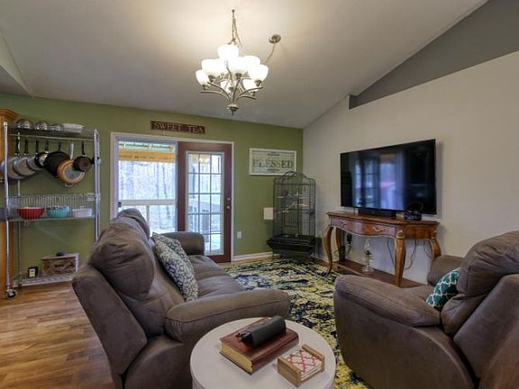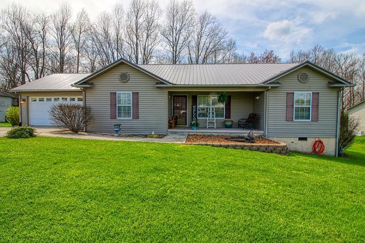 You are going to fall in love with this lovely 3 bedroom, 2 bath home. The interior has been well-cared for and tastefully updated with fresh paint and new carpet in the bedrooms. Natural gas HVAC and water heater have just been replaced. Very low maintenance vinyl siding, metal roof. You will love having your morning coffee on the large covered deck and listening to the creek flowing through the woods. This 1 acre lot is approximately half wooded in the back for lots of privacy. Home is located on a dead end street only minutes from town. This one will not last, so call today to set up your showing.