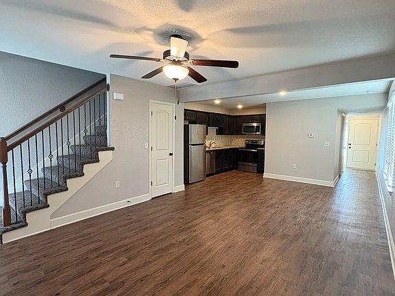 Step into this beautifully spacious 3 bedroom townhome that bring a clean, modern and inviting atmosphere to every room. This well maintained and spacious Three-bedroom town-home features a 1-car garage, full-size washer & dryer hookups, granite countertops and stainless steel appliances. Two walk in closets, plenty of storage throughout the home. The main level on suite master bedroom boasts 10ft ceilings, and ceiling fans throughout. Enjoy the convenience of oil rubbed bronze hardware and a pet-friendly policy for 1 pet per unit. Residents have access to the community pool, walking trails, and playground. Utilities include electric, water, and trash paid by the resident. Don't miss out on this fantastic townhome in a quiet neighborhood and fantastic location close to shopping and schools. This is an exclusive exterior units with 3 bedroom upstairs. See floor plan for details. Minimum 12 months term. Tenants pay for all utilities and renter insurance.