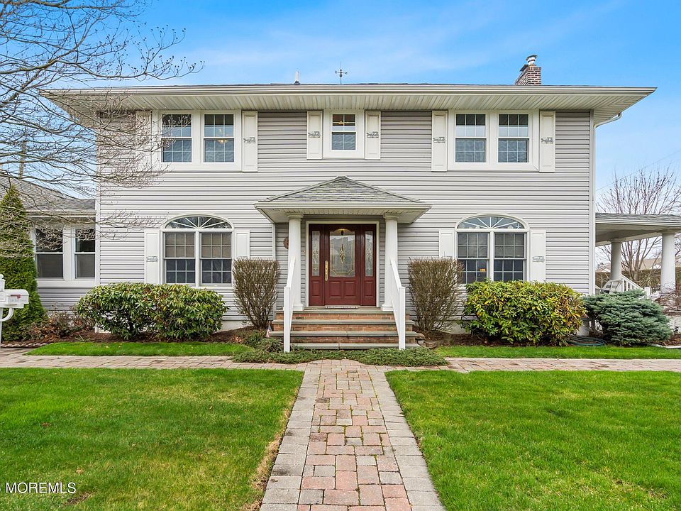Welcome Home! Run, don't walk to this beautiful 3 bedroom, 2 full bath colonial with a finished basement. Tour this gorgeous, immaculate home with wood floors. The first floor features a kitchen with a peninsula and a pantry, dining room with a private nook, full bath and living room with a wood burning fireplace which leads to a covered porch and patio. The second floor features 3 bedrooms and a full bath with double sinks. Go downstairs and enjoy the finished basement with an additional den/family room, 2 finished rooms and a laundry room. High private shrubbery on this large, corner lot awaits outdoor entertaining. Oversized garage and shed providing ample storage space. Solar panels will be transferred to the next buyer. PRIME LOCATION: 2 1/2 blocks to the beach, 1 mile to Pier Village, walking distance to West End and 1/4 mile to the train. Across the street New Municipal Park and Health & Technology Center. About 4 miles to Netflix Studio at Fort Monmouth projected to open 2028. 4 miles from the developing Monmouth Square which will include luxury apartments, community amenities, new retail and dining.