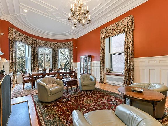Located on Waterside Beacon Street, this rare Parlor and Second Floor Duplex offers grandly scaled interiors, its own elevator, multiple private outdoor spaces and 4 parking. This spacious home with a generously wide floor plan contains 3 bedrooms plus a separate studio on the garden level. The parlor level includes the formal living and dining rooms highlighted by soaring ceilings and the kitchen with pass-through to the more casual living and dining room with access to the large private deck. Upper level bedrooms include the Master suite with two separate full bathrooms, large walk-in closet and balcony overlooking the River. Extra storage and 2 garage and 2 outdoor parking spaces, make this a truly exceptional Back Bay opportunity.