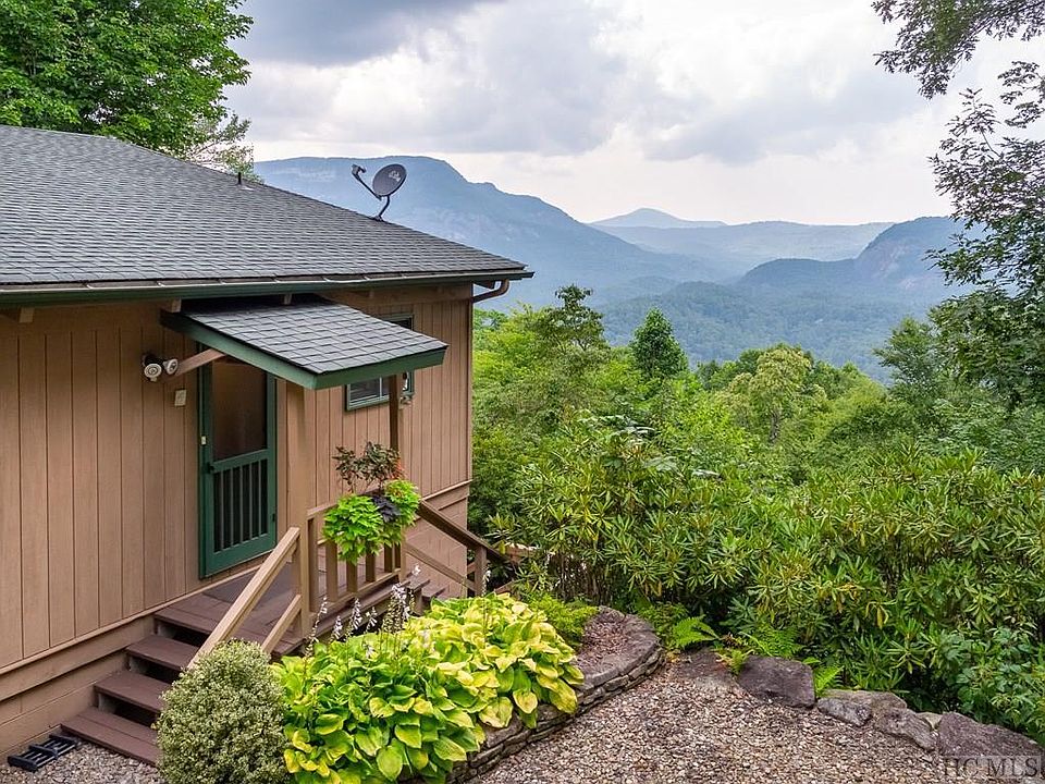 Captivating views of Whiteside Mountain invigorate your soul as you enter this meticulous, one-level living Found Forest cabin. Walk in and kick off your shoes; the near-level entrances make access a breeze. From the moment you step in the door, the limitless views envelope the open and flexible main living space. The altitude affords beautiful weather to settle into a hammock with a book on the back deck and draw inspiration from nature's bounty, as hummingbirds buzz and dance through the air. As seasonal temperatures cool, nestle into your favorite spot near the crackling fire with a beverage and relax while soaking in the incredulous views. The three-bedroom, split floor plan offers privacy for guests and owners alike. The large and cabinet-rich kitchen has generous space for one or many chefs. A full wall of wooden cabinets affords a sizable pantry or additional appliance storage. Remember to visit the workshop, which could serve as a potting station or an additional storage space that is accessed by the exterior door to the crawl space. The almost four-acre property includes a fenced-in yard, ideal for children or your four-legged family members to enjoy the freedom to roam. An enchanting tree-lined driveway leads to the riverstone-lined parking area surrounded by gardens. Minutes from downtown Cashiers, this home is the epitome of Blue Ridge Mountain living in a serene and secluded setting. Your oasis awaits!