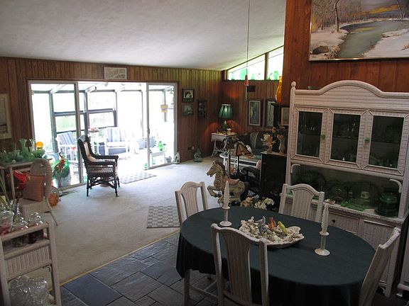 Mid-Century Modern with Hints of Frank Loyd Wright's Prairie Style thruout- Mountain Ash tongue & groove paneling from Northern WI. Birder's Paradise!. Ideal location for the nature enthusiast. Next to 300+ acre Conservation District property. Resort Lifestyle. Golf cart community with many amenities: pool, marina, boat launch,trout streams, fishing, tennis, lodge, horse barn, trails, & more. HOME WARRANTY INCLUDED