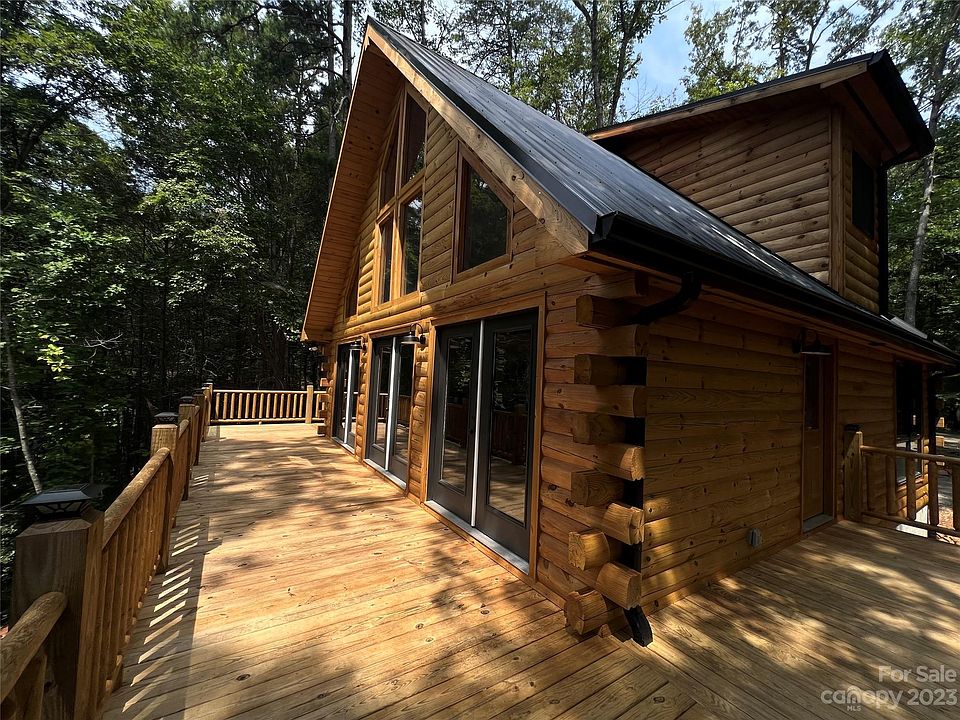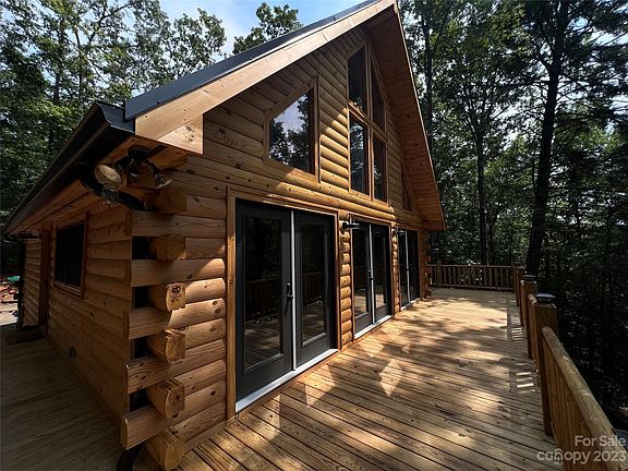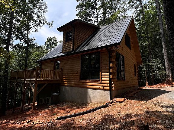 This is a must see newly finished, beautiful log cabin in the desirable Riverbend at Lake Lure subdivision. Being the only house in the street so far, you can enjoy nature in ultimate privacy. Boasting 2 bedrooms, 2.5 bathrooms, cozy loft space, full finished basement, a splendid open kitchen, and abundant outdoor deck area, this cabin is a true gem. The primary bedroom invites you to unwind amidst the natural landscape, and is complete with a beautiful ensuite bathroom. The basement is fully finished, featuring French doors that lead directly to the outdoors, a minisplit system, and pre-plumbed connections for an additional bathroom. Upstairs has another bedroom equipped with its own minisplit, full bathroom and a cozy sitting area facing the wall of windows. Riverbend is an exclusive gated community boasting two private lakes, a sandy beach area, and the meandering Broad River. Conveniently located just a 15-minute drive from Lake Lure's beach and amenities. Come see today!