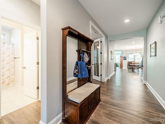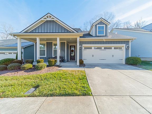 Enjoy this private 1.5-story patio home on a cul-de-sac lot with lawn maintenance included. The screened back porch overlooks a wooded area, and you can view the community pond from your covered, rocking-chair front porch! The primary suite is on the main level and has a walk-in shower. The great room features a gas log fireplace. The gourmet kitchen is upgraded with a 5-burner range, wall oven, and Frigidaire gallery appliances, and it has a walk-in pantry. The guest room has a full bath & there is an office/flex space on the main level. Also enjoy a sunroom, a walk-in shower in the upper-level bath, lots of closet space and plantation shutters throughout. Johnson Manor is a picturesque neighborhood offering walking trails, a clubhouse with gym, community garden, and a dog park. Served by award-winning MGSD schools, it is convenient to shopping and dining, and is just a short drive from downtown Mooresville, Davidson, Lake Norman, and I-77.