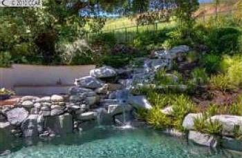 Enchanting resort like grounds frame the 5 Bedroom one used as office, 4 Bath home with granite island kitchen, hardwood floors, crown molding, volume ceilings, designer paint, new carpeting. Private setting, pool & spa, waterfall - Gorgeous!