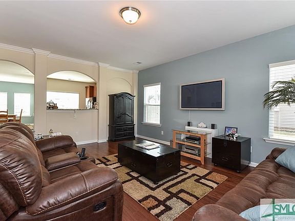 This beautiful home offers 5 bedrooms and 2.5 bathrooms! Open kitchen with granite counter tops and large island with lots cabinet space, stainless steel appliance, breakfast bar area! Kitchen open to living room! Laminate wood flooring throughout main level. Large sunroom off kitchen. Bedroom on main level can be used as office/flex area. Master bedroom with sitting area, master bath with his and her sinks, separate tub/shower. All guest bedrooms with walk in closest space! Large back yard, sprinkler system for front and back yard. This neighborhood offers great amenities such as play ground, salt water pool, in walking distance to the brand new elementary school and the community park and bark park!