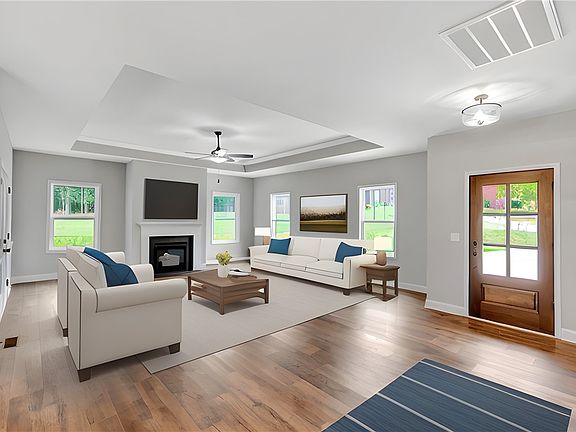 - Tray Ceiling(s), Ceiling Fan(s), Dual Sinks, Fireplace, Granite Counters, High Ceilings, Bath in Primary Bedroom, Main Level Primary, Smooth Ceilings, Vaulted Ceiling(s), Walk-In Closet(s), Walk-In Shower, Second Kitchen, Workshop