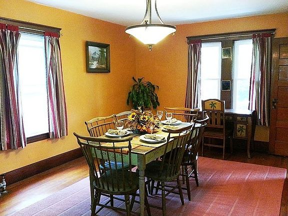 Beautiful Victorian Colonial w/ quaint farmer's porch boasting newer windows, a freshly painted exterior & a three season sunroom for relaxing & enjoyment! The recently updated kitchen w/ maple cabinets & Corian countertops, has a classic tin ceiling & white beadboard. The office/family room w/exposed wooden beams has a propane stove & access to the backyard. Main bath has also been recently updated. Two-Story Barn framed by flowering shrubbery & perennials convenient for commuting!