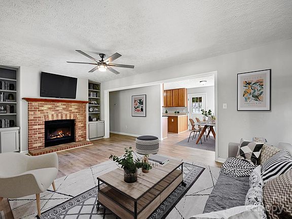 Enjoy easy one level living in this charming home convenient to unlimited shopping and dining options, entertainment, downtown Asheville, the Blue Ridge Parkway and the Interstate. The best part is, NO CITY TAXES. The setting is private with mature shade trees and a covered front porch to welcome you in and rear patio for outdoor entertaining. This well-maintained home has been updated with vinyl plank flooring throughout, interior freshly painted and new AC condenser unit. Features include a spacious living room with fireplace, kitchen with lots of cabinetry, dining room with access to rear patio and split bedroom plan for added privacy. Paved driveway and a large yard-great for kids, pets or just to entertain friends and family. Hurry, this is one you don't want to miss!