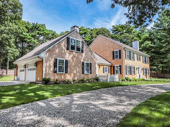 Welcome to this stunning newly renovated colonial style home situated within Oyster Hills West neighborhood of Osterville. Enjoy cooking in this luxurious kitchen that features an oversized kitchen island, Calacatta Sol quartz counter tops and backsplash, with custom Medallion maple cabinets, and high-end appliances. The first floor also offers a bedroom with attached full bath, living room with a wood burning fireplace, dining room, half bath, family room featuring vaulted ceilings, wood burning fireplace, and French doors leading out to the patio. The second floor features a primary suite that includes an oversized his and hers built-in walk-in closet and primary bath offers walk-in shower. The second floor also includes a laundry room, two additional bedrooms, and a full bath. Above the 2-car garage is a spacious bonus room/office space. The basement has two finished rooms and an unfinished space for storage and utilities. This is craftsmanship at its best with white oak floors, recess lighting, bedroom ceiling fans, all bathrooms have heated floors, central AC, full house Generac generator, and outdoor shower. Don't miss out on this move-in ready home!