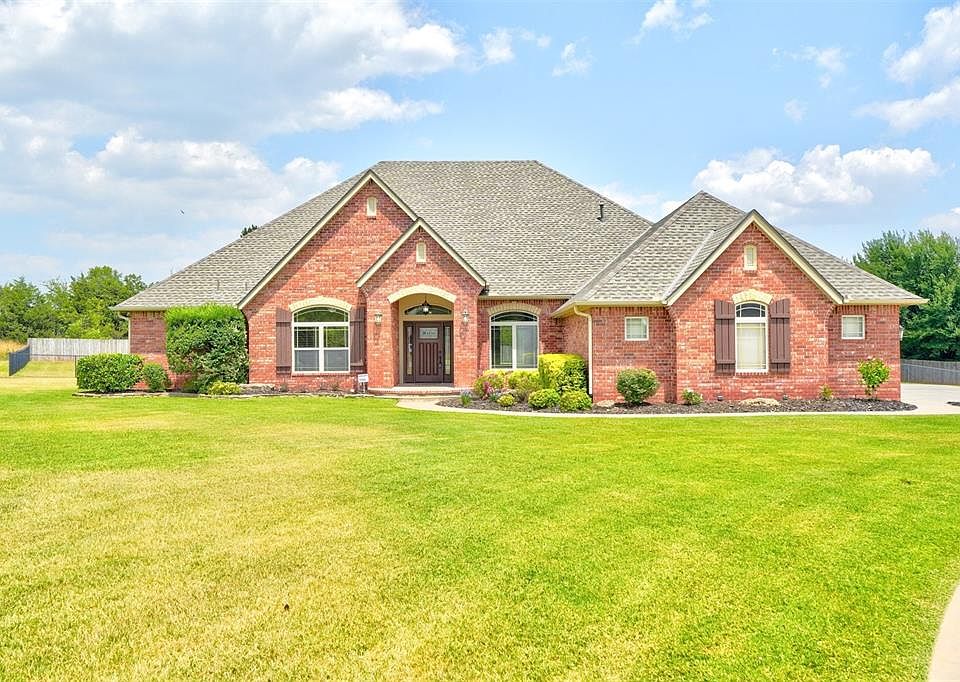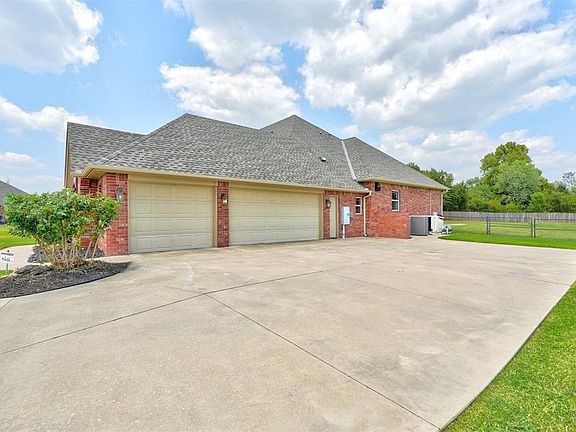 Welcome to your dream home! This home is located in one of Choctaw‘s most desirable neighborhoods and built by one of Choctaw‘s best builders SWM Homes! From the moment you walk in, you’ll notice all the attention to detail. The spacious entry way, hardwood floors, double crown molding, beautiful fireplace with a stone hearth, 10 ft ceilings, knotty Alder cabinetry throughout, as well as tile and hardwood floors, which makes for easy cleanup and tons of natural light! There is a flex room right off the kitchen that could either be a, dining room, workout room or family room. The possibilities are endless! The living room, flows nicely into the well appointed kitchen. The kitchen has tons of storage throughout with so much cabinetry! Granite countertops, stainless steel appliances, quartz countertops, large island w/ seating for four. The pantry is wonderful! Utility room is well appointed with lots of cabinets & counter space also. The master bedroom has double vanities, a huge shower with a separate tub, and a wonderful walk-in closet! Two bedrooms with a Jack and Jill bathroom between both bedrooms. Each bedroom has a walk-in closet also. This house sits on just over an acre that is fully fenced. An oversized three car garage with a storm shelter. Every inch of this square footage has been utilized and is in great condition. There is so much storage throughout this house. This home is just immaculate! Updates to this home include tankless hot water heater, roof replaced (2021), and 5G ATT&T fiber. This located in Choctaw schools is has move-in ready. This property sits on a wonderful cul-de-sac, and is close to I-40, and 15 minutes away from Tinker force base. There is still time to enjoy the 18x36 vinyl-lined saltwater swimming pool with heat pump! DON"T MISS OUT ON THIS BEAUTY!!!