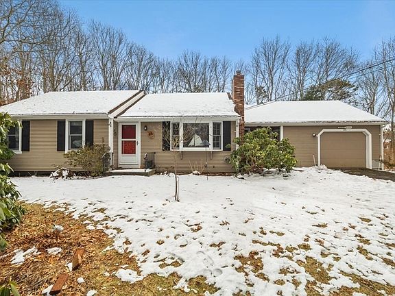 Ranch in Monument Beach has hardwood flooring throughout and offers a garage and full (huge!) basement. About 2 miles to Mounument Beach marina and beach. Less than that to post office, ice cream, bakery, coffee shop, convenience store, playground and beautiful sunsets. Well kept ranch has 2 large bedrooms. The primary bedroom has a full bath. Front foyer with closet. Kitchen is bright, spacious and open to dining room/area. 3 season sun room with tile floor has pretty views of the back yard. Outdoor shower. The house is set back from Clay Pond Rd so you'll be pleasantly surprised by how private it is. Nice extra feature is outdoor hookup if you have a camper or something needing extra power. Wood burning fireplace. Passing Title V in hand. The system is for 3 bedrooms - the house has 2 bedrooms. Forced hot water by natural gas installed 2010/11. Most windows replaced with Anderson windows in 2011.