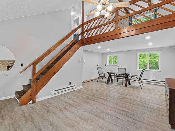 Property is under contract and receiving backup offers only at this time. Charming Contemporary in Saw Creek Estates - Ready for Your Vision! Tucked away in the amenity-filled, gated community of Saw Creek Estates, this 3-bedroom, 2-bathroom contemporary home is bursting with potential and just waiting for the right owner to bring their vision to life. With a new roof and brand-new windows that flood the home with natural light, many of the big-ticket items have already been done—now it's your turn to finish what's been started and turn this into your personal masterpiece. Step inside to find a bright, open living space featuring a beautiful stone-faced wood-burning fireplace, perfect for cozy evenings. The loft adds extra flexibility—ideal for a home office, reading nook, or guest space. Outside, the huge wraparound deck is the star of the show—imagine stargazing from your future hot tub or entertaining guests with the sounds of nature all around. The exterior could use a little TLC, but the solid bones and stunning natural surroundings make it well worth the effort. Envision adding a waterfall feature to the existing large boulder on the property—your own tranquil escape right at home! Enjoy the peace and seclusion of mountain living, with all the perks of a vibrant community: indoor/outdoor pools, tennis courts, fitness center, lakes, and more. Just minutes from all the fun, dining, and adventure the Poconos has to offer. This is more than a house—it's a chance to create something truly special. Seclusion, space, and so much potential—all at a great price. Don't miss out!