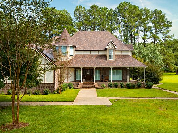 Beautiful custom built home on an acre that backs up to a golf course! be prepared to be amazed to the beautiful charm the gorgeous heart pine floors that were reclaimed from a 100 year old mill to the 20ft ceilings and to the size of all the rooms. The stunning ceilings are made from northwestern white pine. Relax in the family room with plenty of natural light, 20 ft ceilings, and a fireplace. or step into the attached sunroom. The downstairs master has 3 closets and leads to the humongous master bathroom. there is plenty of counter space and cabinets in the kitchen, a breakfast nook that leads to the very large screened in porch. There is also a large dining room and a office downstairs. The upstairs 2 bedrooms have their own bath. You will also love the pool and all the space outsid
