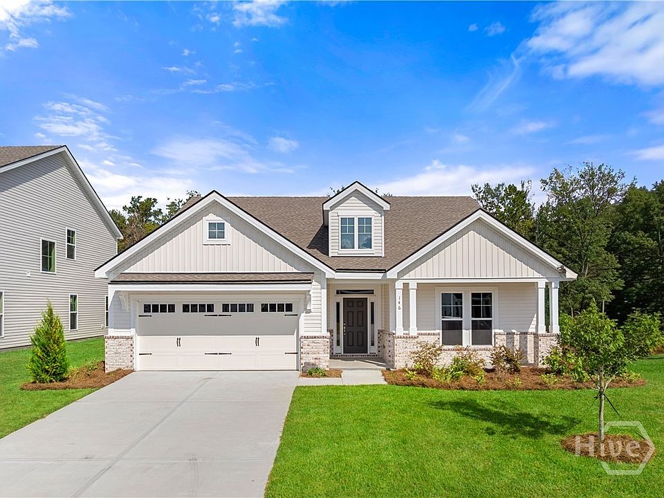 MOVE IN READY!! Savannah's trusted builder is offering the Roxboro plan. This 3BR, 2.5BA ranch home of approx 2,080sqft has a very spacious and open concept design. Gourmet kitchen boasts expansive quartz counters, French door stainless frig, flat electric cooktop, double ovens, and 42" upper cabinets, & is finished with beautiful flanked island pendant lights. It's open to the cafe area & great room. The primary suite includes a bathroom w/6' walk-in frameless, tiled shower. Double vanities. All baths have quartz countertops and framed mirrors. Gorgeous click plank flooring is in main living areas, tile in the baths and laundry. BRs are carpeted. Electric fireplace in great room. Home has a level 3 ADT security system (not monitored). The exterior has a 12x12 covered porch, sod, landscape beds and irrigation. Pictures, features, and selections shown are for illustration purposes and may vary for the actual home built. All Builder incentives applied.