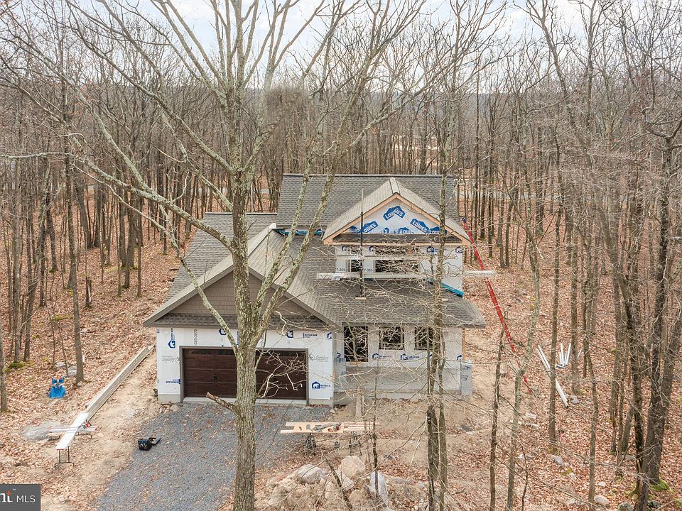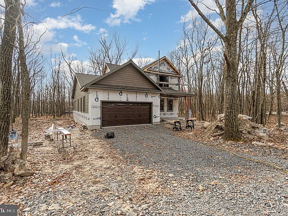EAGLE ROCK RESORT!! This is your chance to own a new construction home without the wait in this beautiful community! Experience the spacious and light-filled open-concept living environment with added upgrades from the original floor plan. This home's layout seamlessly integrates the living, dining, and kitchen areas, creating a vast and inviting space, perfect for socializing and entertaining. Step inside and you will be greeted with beautiful laminate flooring running seamlessly throughout the entire main living area. The well-appointed kitchen features two tier island with modern appliances, generous counter space, and an efficient layout, making it a delight to both cook and entertain in. A spacious dining area is open to the family gathering room with a cozy gas fireplace. The main-level primary suite offers easy accessibility and comfort, eliminating the need to navigate stairs daily, and features a well-appointed primary bathroom. Step outside onto the large Trex deck off the living room and primary suite, where you can relish the serene views of the wooded backdrop. Stay organized in the oversized laundry area and enjoy convenient access to the two-car garage. For those seeking even more living space, a substantial unfinished basement complete with pre-plumbed bath and possible fourth bedroom including egress adding well over 1,000 square feet of additional living area. Situated on a premium homesite, this property offers an impressive setting for both indoor and outdoor living. AMMENITIES!!! 27 Holes of Golf Championship Course Co-designed by Arnold Palmer, Equestrian Center including an indoor riding arena and On-site Restaurant boasting big tastes global influences, Four Swimming Pool including an new aquatic center, State of the art golfing practice facility, oh wait ... two lakes ... ski slopes!! Seriously wondering why you would want to live somewhere else?? Price includes finished landscaping complete with concrete driveway and walkway to main entrance. Eagle Rock Resort is a private community located on over 5,000 acres in Hazleton, Pennsylvania, only two hours from both New York and Philadelphia. Onsite amenities include an 18-hole championship golf course and 9-hole executive course, fine and casual dining, golf shop, ski and snow sports, outdoor swimming pools, indoor aquatic center, spa and fitness center, equestrian center, activity center with basketball court, walking trails, 24/7 gated security and more.
