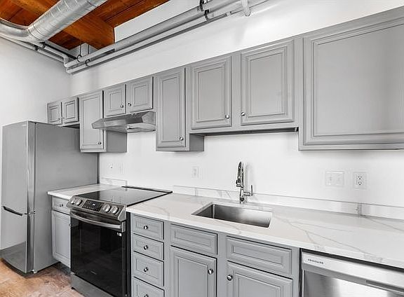 Welcome to this bright, spacious, and fully remodeled condo in the heart of downtown Brockton! Featuring a thoughtful open-concept design, this home combines modern finishes with an urban loft-style feelperfect for both comfort and convenience. Inside, enjoy brand-new flooring, fresh paint, upgraded light fixtures, new bathroom vanities, quartz countertops, professionally refinished cabinets, and all-new kitchen appliances. The smart split-bedroom layout provides privacy, with bedrooms on opposite sidesincluding a primary suite with ensuite bath. High ceilings, exposed brick, and central HVAC add character and style. Unit Features: 2 Bedrooms / 2 Bathrooms (including ensuite) Open-concept living & dining area Quartz countertops + all new kitchen appliances High ceilings & exposed brick Central HVAC Deeded parking spot Additional basement storage In-unit laundry Building Amenities: Secured building with elevator access Shared media room Professionally managed community Prime Location: Convenient downtown setting Easy access to public transportation Near shopping, dining, and entertainment Modern comfort meets city convenienceschedule a showing today!