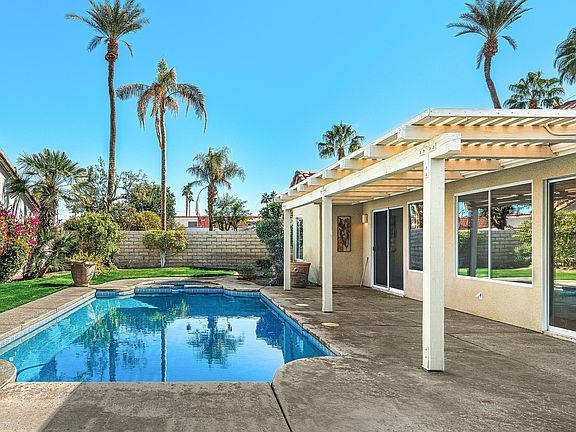 Located in the Heart of Palm Desert, this tastefully remodeled unfurnished 4 Bedroom home offers the ultimate in elegant desert living. Discover a warm inviting atmosphere inside including a large formal living room, dining room space with soaring open ceilings and plantation shutters, flowing seamlessly into a comfortable family room with a cozy fireplace overlooking the pool and spa. An updated Entertainers kitchen complete with breakfast nook , pantry , center island and new appliances with modern finishes and lighting.